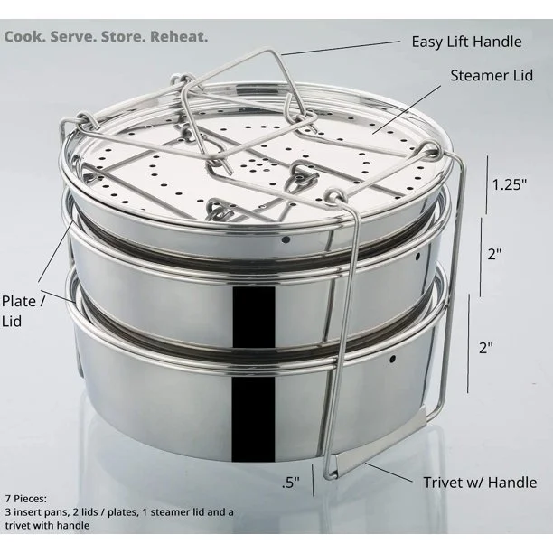 This is an example of a 3 Tier Stackable Steamer Set for the Instant Pot This is an example of a 2 Tier Stackable Steamer Set for the Instant Pot